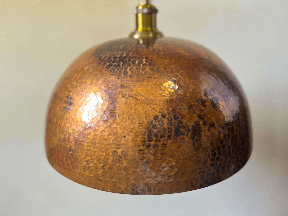 Our copper dome pendant light embodies exclusivity. Crafted with utmost care and dedication, each piece is unique, ensuring that you'll never find an identical counterpart. Infused with heart and soul, they are tailored exclusively for their future owners.So, be prepared to embrace the beauty of imperfection and cherish the individuality of your lamp!